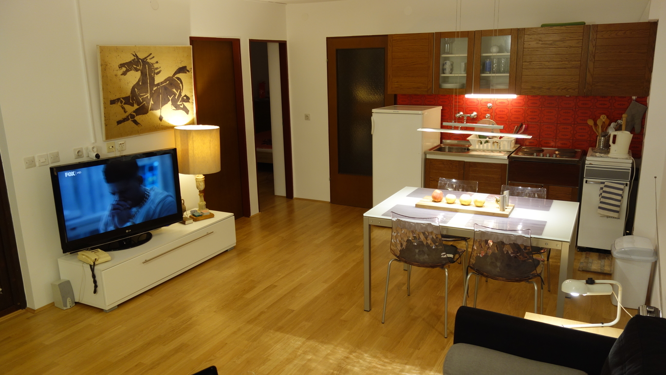 Apartman porodice Jevtic nalazi se na trecem spratu luksuzne zgrade, Nedavno je renoviran i savremeno opremljen. Povrsine je 65 m2, udobno smešta 4-6 osoba (dve spavace sobe + dnevna soba), sa opremljenom kuhinjom i kupatilom.